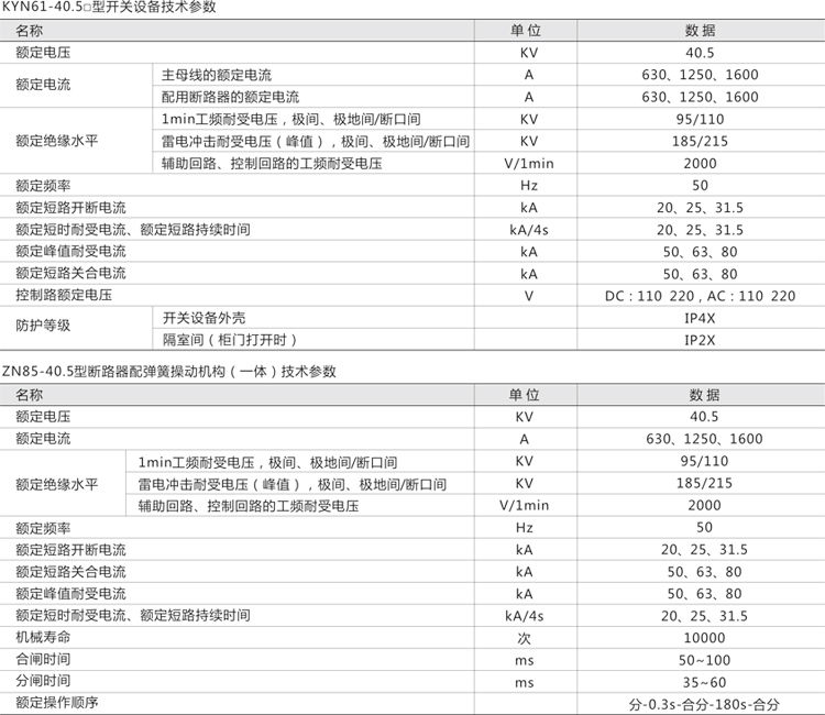 KYN61-40.5□ 型鎧裝移開(kāi)式交流金屬封閉開(kāi)關(guān)設(shè)備 (以下簡(jiǎn)稱(chēng)“開(kāi)關(guān)設(shè)備”) 其主要特點(diǎn)是柜內(nèi)配用 ZN85-40.5 型全絕緣真空斷路器及彈簧操動(dòng)機(jī)構(gòu),也可配用ABB的VD4-40.5和HD4-40.5柜體采用敷鋁鋅板和冷軋鋼板噴塑組裝而成,提高了手車(chē)與柜體的配合精度,手車(chē)推進(jìn)拉出十分輕便,互換性強(qiáng)。外形美觀、方案齊全、使用安全可靠。