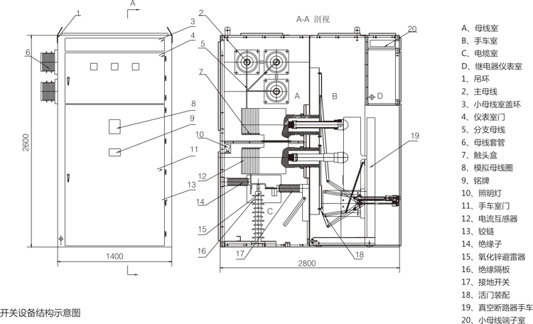本開(kāi)關(guān)設(shè)備具有電纜進(jìn)出線、架空進(jìn)出線、母線聯(lián)絡(luò)、隔離、電壓互感器、避雷器等主電路方案。母線采用復(fù)合絕緣,相間及連接頭配有用阻燃材料注塑而成的絕緣套,主母線相鄰柜間用母線套管隔開(kāi),能有效地防止事故蔓延,同時(shí)對(duì)主母線起到輔助支撐作用。電纜室裝有接地開(kāi)關(guān)、過(guò)電壓保護(hù)裝置等。