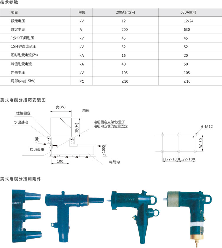 美式電纜分支箱是一種廣泛應(yīng)用于北美地區(qū)電力配網(wǎng)系統(tǒng)中的輸配電工程設(shè)備.它以單向開門、橫向多通母排為主要特點,具有寬度小、組合靈活、全絕緣、全密封等顯著優(yōu)點。按照額定電流一般可以分為630A主回路和200A分支回路兩種。630A主回路采用旋入式螺栓固定連接;200A分支回路采用插拔式連接,且可以帶負荷拔插。美式電纜分支箱所采用的電纜接頭符合IFFF386標(biāo)準(zhǔn)。廣泛適用于:城市電網(wǎng)改造、住宅小區(qū)、商業(yè)中心等城市人口密集地區(qū)。