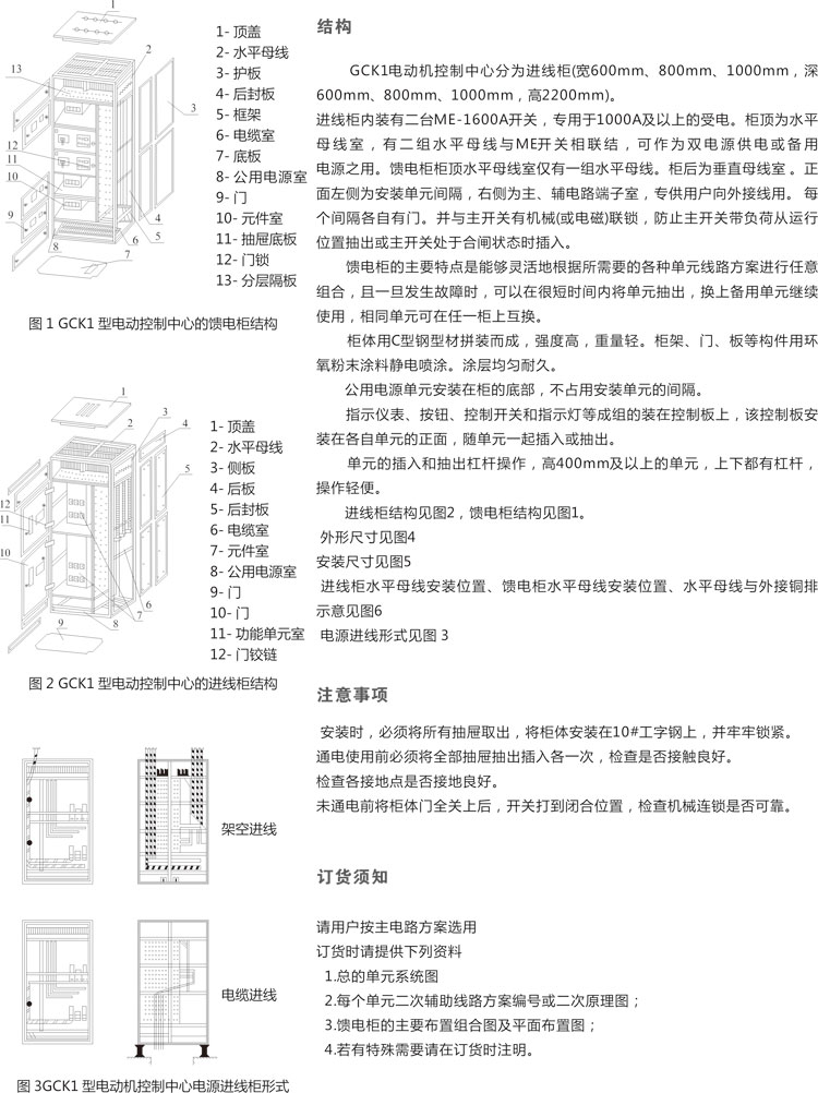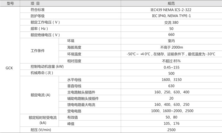 GCK低壓抽出式開關柜,主要是由一些組合式電動機控制單元,和其它功能單元組合而成。這些單元以上下重疊的方式安裝在封閉的金屬柜體內(nèi)。用設置在柜體上方的水平母線,將每個柜體聯(lián)結在一起,同一柜體的功能單元則并聯(lián)在垂直母線上。柜體共分水平母線區(qū)、垂直母線區(qū)、電纜區(qū)和設備安裝區(qū)等四個互相隔離區(qū)域,功能單元分別安裝在各自的小室內(nèi),當任何一個功能單元發(fā)生事故時,均不影響其它單元,防止事故擴大。本產(chǎn)品符合JB/T9661-1999標準。該產(chǎn)品采用IEC114規(guī)定的IP40防護等級,當所有的門和護板關閉時,或門開啟時以及功能單元外于移出位置時,均能達到相應的防護等級,這樣可確保人身安全。該產(chǎn)品設置有完善可靠的接地系統(tǒng)和保護電路,所有功能單元均能按規(guī)定的性能要求,分斷短路電流,進線單元具有三段保護特性。因此,可以保證供電的可靠性,和設備與系統(tǒng)的安全。所有功能單元,均可通過接口件與PC線板(可編程序控制器)或微處理機連結,作為自動控制系統(tǒng)的執(zhí)行單元,根據(jù)用戶需要還可以提供其它內(nèi)容的功能單元和功能組合,該產(chǎn)品適用于交流380V,頻率50Hz的電路中。